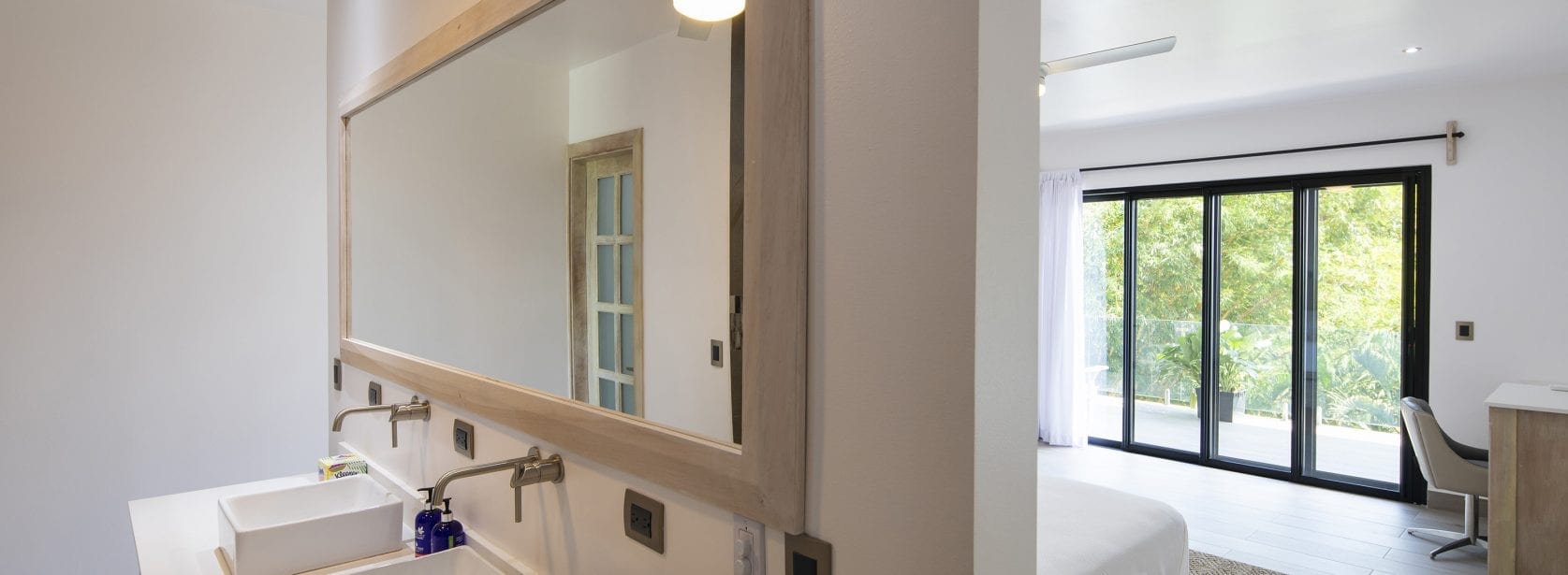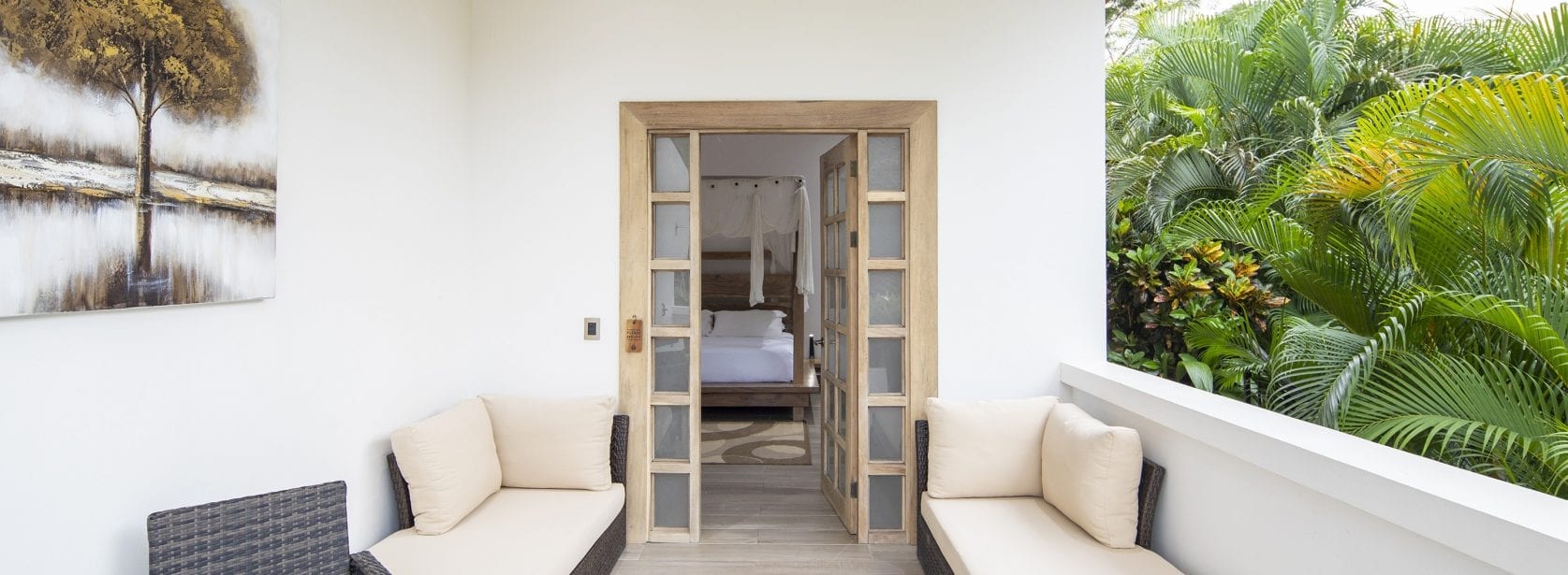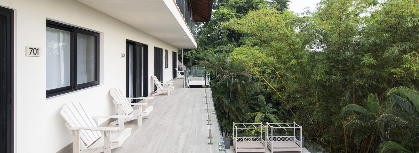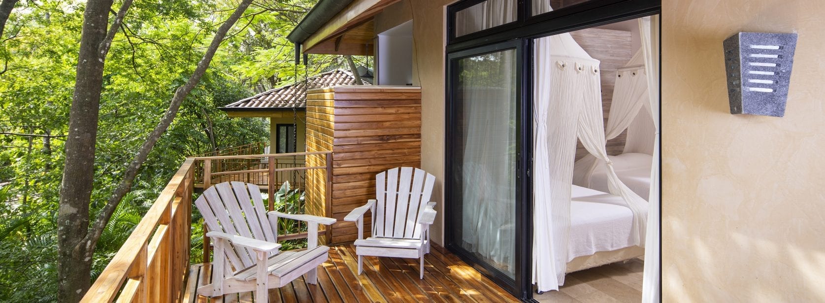 This room includes a king bed, luxurious bathroom, air conditioning, wifi and a shared balcony with a jungle view.
