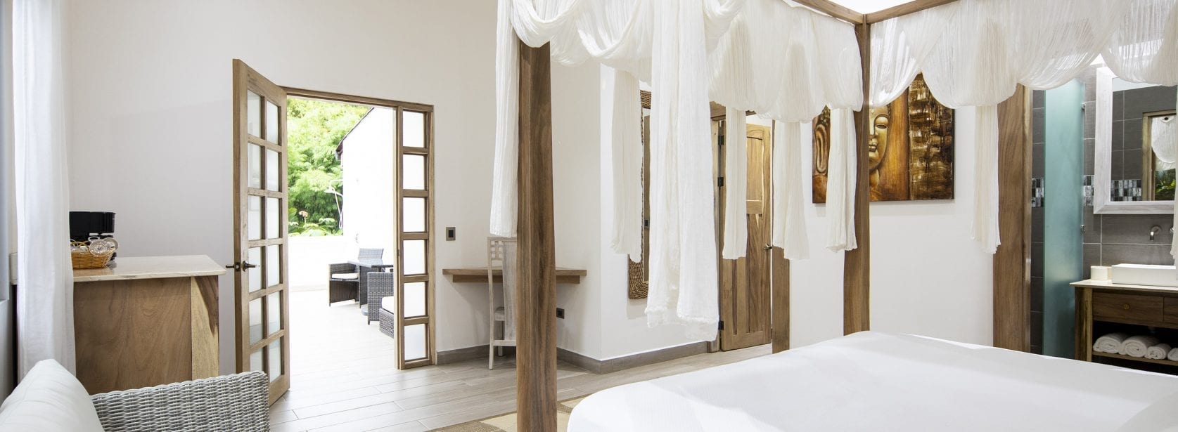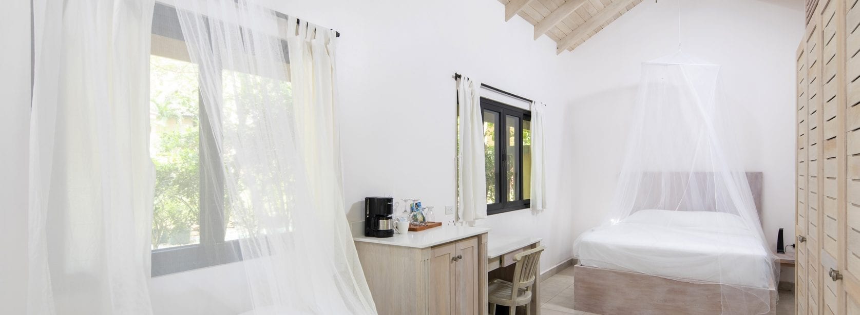 This room includes one king bed, luxurious bathroom, open air shower, air conditioning, wifi and a balcony.